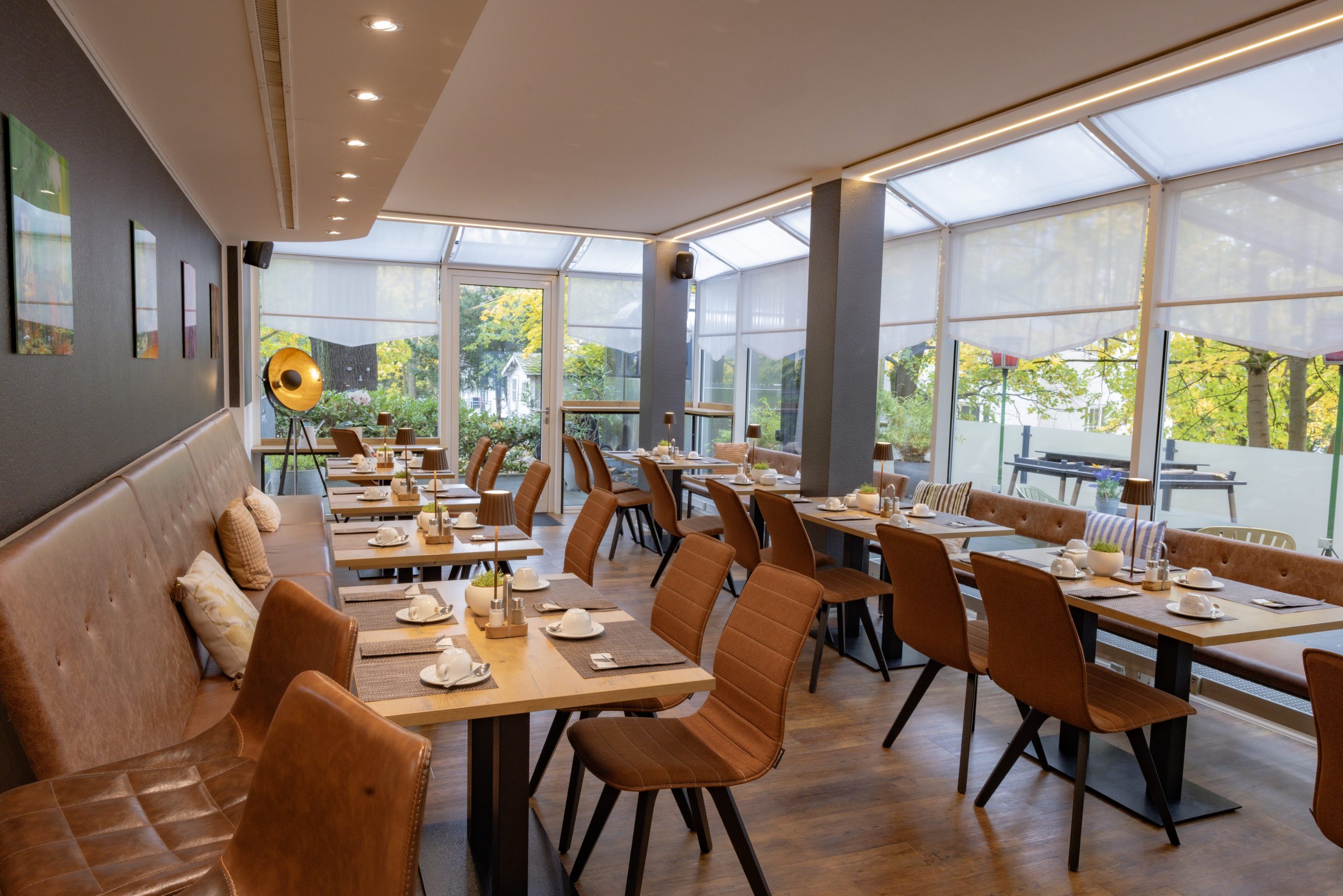 Beginnen Sie Ihren Tag mit unserem reichhaltigen Frühstücksbuffet, das Ihnen die nötige Energie für einen erfolgreichen Geschäftstag liefert. Nach einem produktiven Tag können Sie in unseren komfortablen Zimmern entspannen oder einen Drink in unserem Wintergarten genießen.
